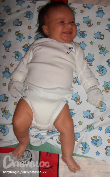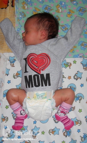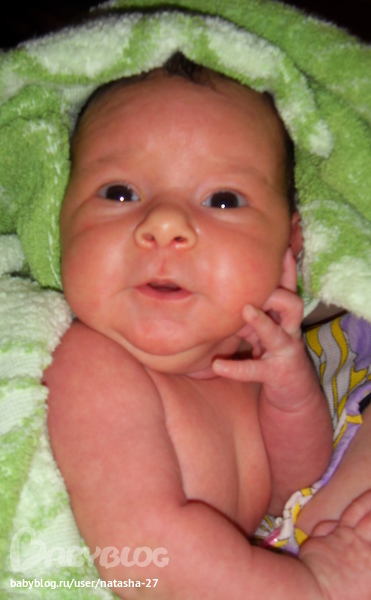 Нам уже почти 2 месяца, мы уже такие большие по сравнению с тем что было ... родились крошечными 2950 (врач когда первый раз приходила даже подумала что мы недоношеными родились) , в месяц уже были 4700, вот во вторник явка,интересно на сколько мы уже выросли)) По больницам когда ходили узких-специалистов проходить, мне все детки такими маленькими кажутся, хотя мы вроде не крупняки))