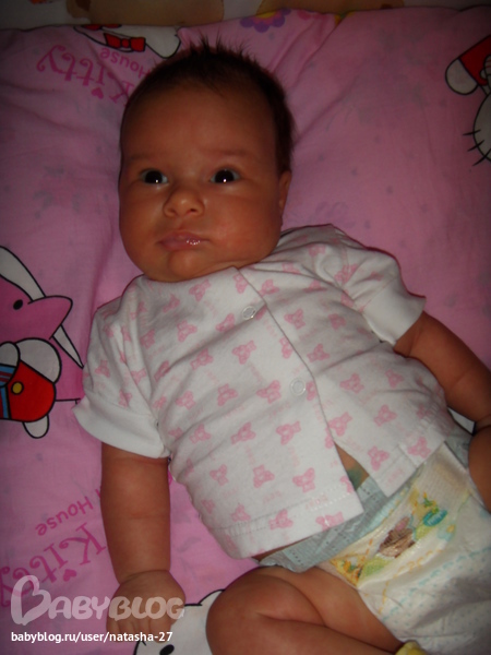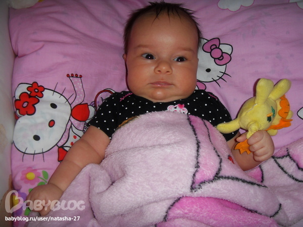 Ростем,с каждым днем,что-то новенькое,особенно за последнюю недельку: перестали мучиться с животиком (ТТТ), начали много болтать, улыбаться уже оснавательно стали) Особенно любит с папой беседовать, что-то рассказывает ... а сейчас даже во сне болтала, я даже подумлась что она проснулась,заглядываю в кроватку а она спит)))