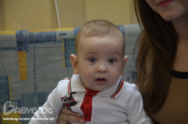 Активно перекатываемся по всему дивану.Сами еще не сидим, только с поддержкой мамы. Много пищим, разговариваем и смеемся. По прежнему любим утюг, кота и появилась новая фишка - разговаривает со спинкой дивана))) Любимые запретные игрушки - пульт, телефон, мышка)