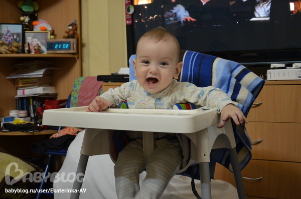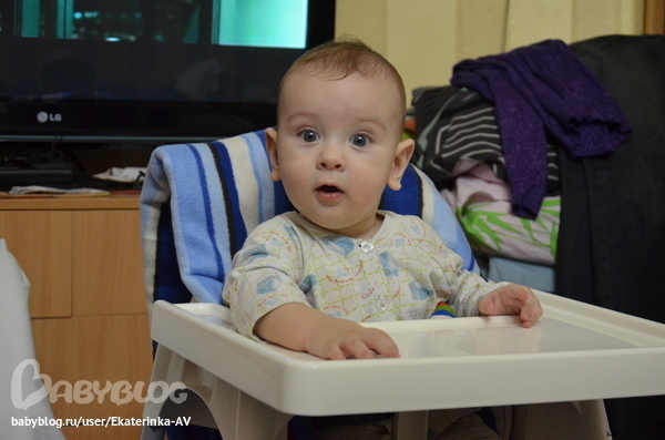 Кушаем пюрешки, кашки.Начали творожок и мясо. Умеем пить водичку с поильничка и сок с трубочки.