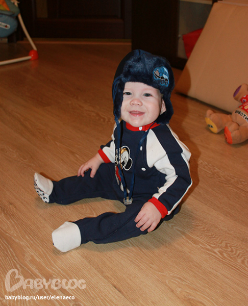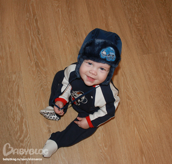 А еще сегодня нам привезли обновки. Илюхе особенно понравилась шапка))