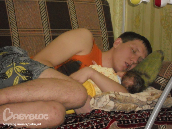 В 9 утра кладу ее рядом с собой или на себя.Вот на фото мы досыпаем утром))