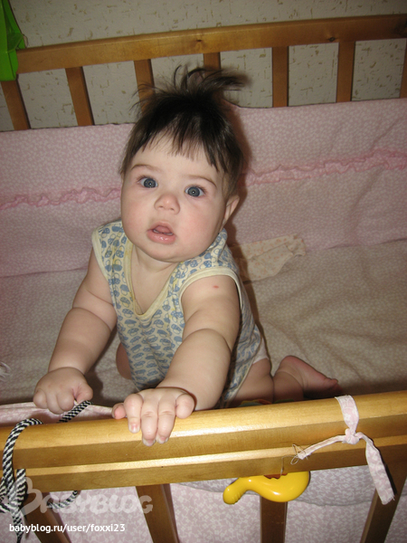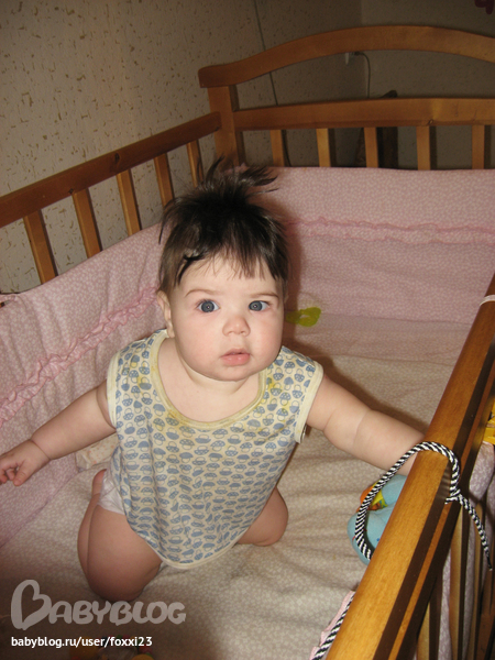 6 мес. сегодня первый раз встал в кроватке на колени, дотянулся ручками до борта и подтянулся, начал переставлять колени по очереди как при ползании. Уже 3 часа не могу остановить, постоянно хочет стоять на коленях, придерживаясь ручками.