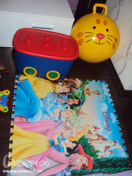 А на этом коврике в основном лежит, играется. Еще коробка для игрушек на колесах, пока все вмещаются))