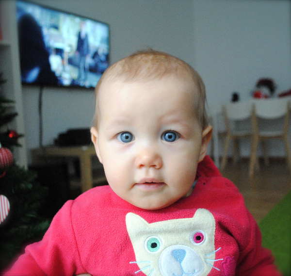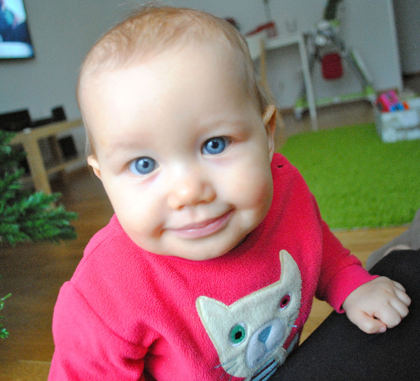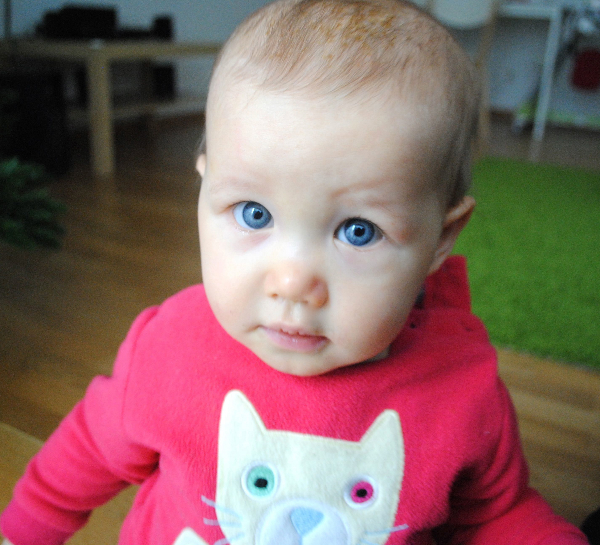 Какая лапочка)))) А глаза какие обалденные..Голубые- голубые))) У дочи тож такие были, а потом цвет сменили, и стали зеленные...А мне так нравятся голубые глазки!!!