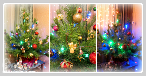 ЭмоцииА точнее сосна. Фух, нарядили сегодня. Очень, очень давно я не ставила живую ёлку сосну. Подошли к этому делу со всей ответственностью. Купили песка на строительном рынке, засыпали в ведро (будем поливать), поставили деревце, нарядили только пластиковыми и соломенными игрушками. И вот сегодня еще гирлянду докупила, светодиодную. И вот она, наша красавица... любуюсь! А как Лёве понравилась, как завороженный смотрел и улыбался!