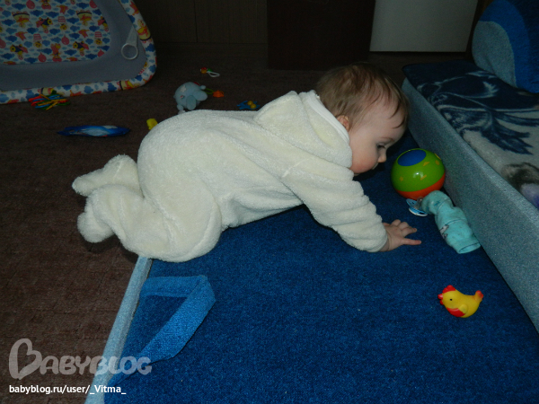 ХвастаемсяДима уже пару дней ходит у дивана, да так быстро как будто побежать хочет)) А сегодня залез на полуразложенный диван)) сантиметров 25 высотой)) и как он додумался что нужно ножку поднять...молодец мой мальчик)) Даже может присесть за игрушкой у дивана, но в основном на попу плюхается)) и пара фоток