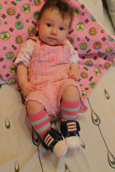Да, хорошо, что примерила, а то там написано 6 мес., а они совсем не на много больше. Открыла бы я их в 6 месяцев, а они уже маленькие... Правда вчера их обула, а в них у нее ноги потеют, жарко. И куда их носить теперь не знаю?!