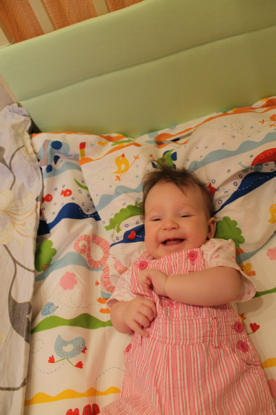 Спасибо! У нас стало очень трудно запечатлеть улыбку, т.к. сразу смотрит на фотик и изучает его, тут только из-под тишка