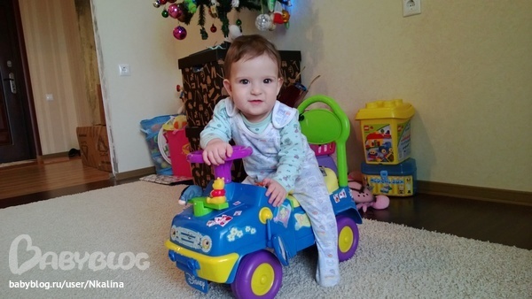 Из-за всех этих болезней особо нет новых умелок, стал махать ручкой )), стал приседать под музыку ну и уверенней ходит держась за опору, садится сам пока только на коленочки, очень любит хлопать в ладошки, вот он мой золотой зайчик: