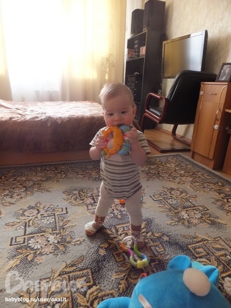 какой молодец - мужчина растет!!! Уже самостоятельность проявляет))))) Моя вон до сих пор не то что не ходит, а даже не стоит без опоры)))) Красавчик!