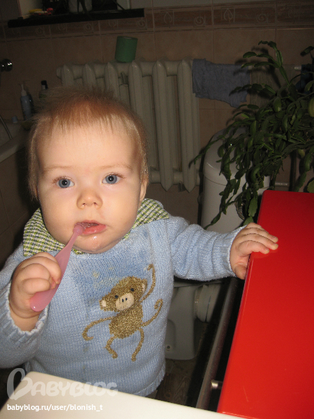 3. Вырастили 6 зубов (4 верхних, два нижних). Поэтому ходим с мамой чистить зубы по утрам силиконовой штукой канпол... занятие это нравится, очень довольный...