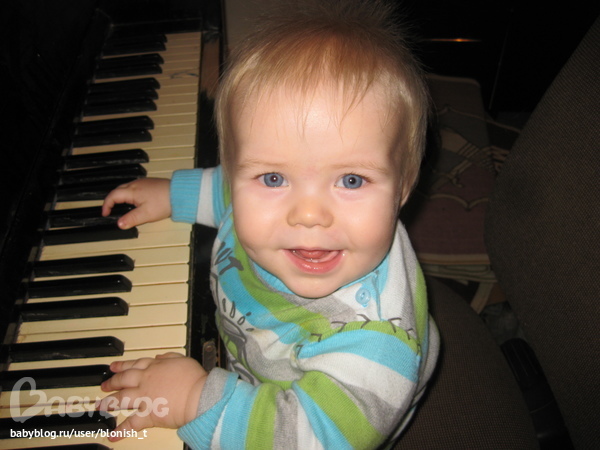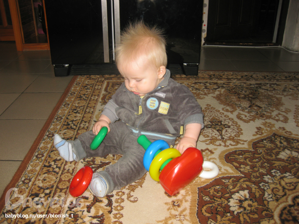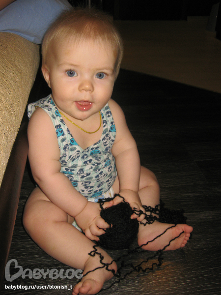 совсем большой и умный мой мальчик)))) (и так каждый месяц) умеет, стоять, пытается топать, много чего кушает, а ещё лапочет всё время на своем каком-то неземном языке)