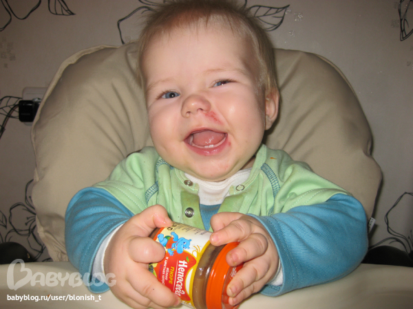 2. кушаем почти всё (по сотоянию на 28.12.12) кроме рыбы. Уважает фруктовые пюре, печеньки и хлебушек. За яблоко - Родину продаст... Яблоки - это вообще зрелище великолепное: держит целое яблоко сам, и если вовремя не вмешаться, то слопает всё, даже косточки...