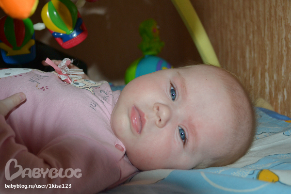 6) Улыбается прям всем всем,смеемся в голос редко ( 1-2 раза в день,не больше) и то только маме, когда я ее кусаю))) ;