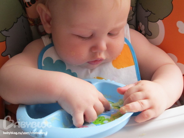 Каши, овощи, фрукты, мясо, творог, сок, вода. Всё ест с бооольшим удовольствием. Аппетит у парня хороший. На днях начинаем вводить желток перепелиных яиц, рыбу и кефир.
