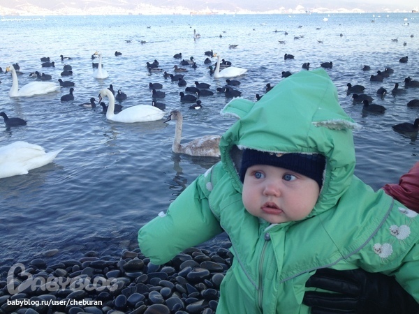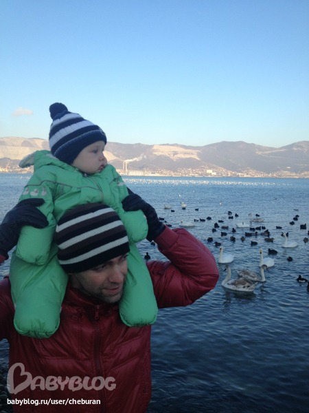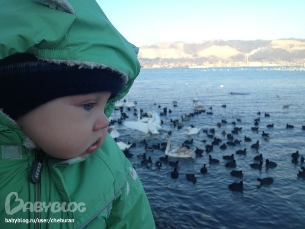Ходили на лебедей и уток смотреть, точнее Лёве показать.