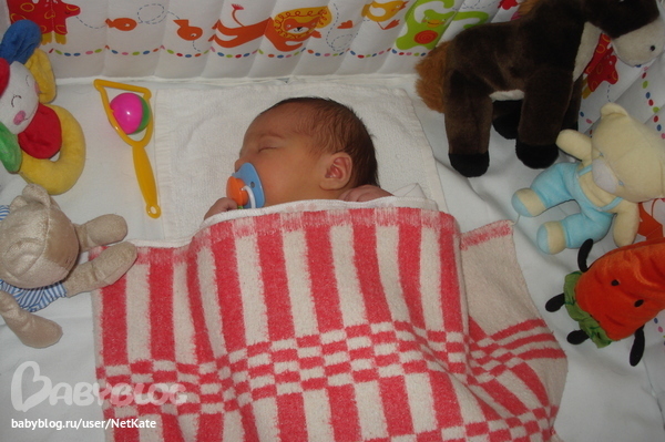 Уже отличает маму от других, успокаивается при звуке моего голоса, поглаживании, кладет головку на грудь, вздыхает и закрывает глазки умиротворенно - так приятно!