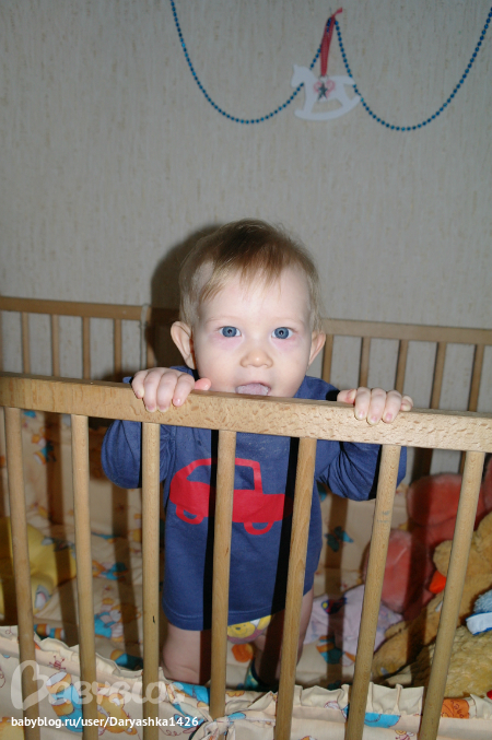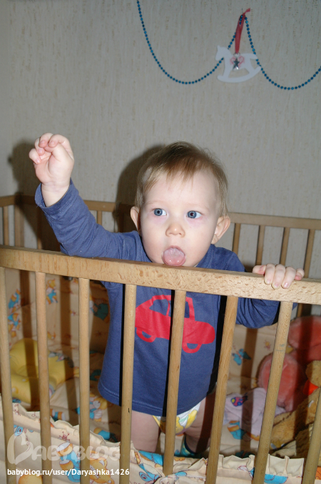 2. Встает в кроватке,ванне и везде где можно за что-то уцепиться,сначала встает на коленки и потом (судя по выражению лица) прикладывая титанические усилия встает на ножки и сразу начинает танцувать