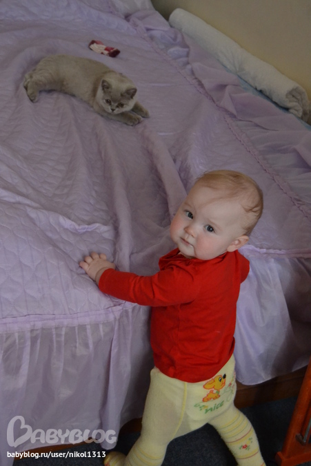 из новенького у нас что,осваиваем горшок пока на 4-ку где то,главное начало положено...что меня радует тк я долго не могла решится.С каждым днем все увереннее ходим у опоры,ползаем как угорелые(есть терь стимул котейка наша)