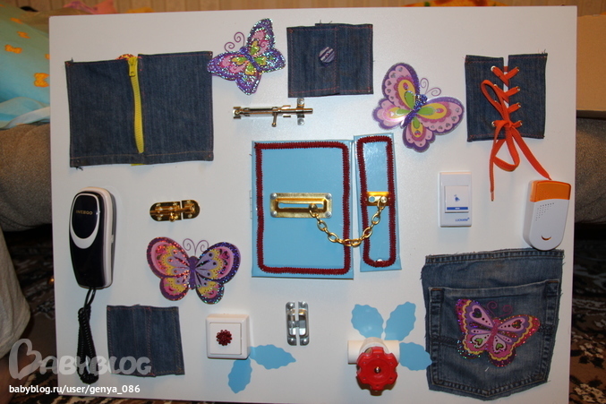 ИгрыВот соорудила такую панель, идею увидела просторах интернета, делала очень поздно ночью и быстро поэтому немного не аккуратно. надеюсь доченька оценит. Осталось только на стену повесить. Фото ниже.