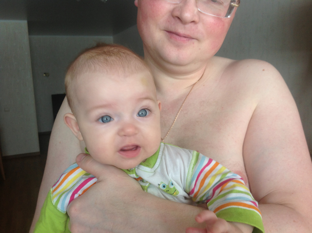 Грудь сосет часто, практически каждый час. Вперед не ползет, речь на уровне певучего "ааааа" разных тональностей. Смеется часто, перестала боятся процесса одевания и на улице не плачет пока ветер в лицо не дунет. Сон частично совместный, днем спит только на руках. В 5 месяцев перешла на три сна днем. Примерно по часу каждый. Ложится в районе 22 30, просыпается в 09 00.