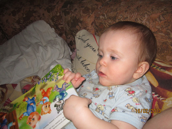 Неожиданно начала сидеть спокойно и подолгу (минут 20, для Валюшки это рекорд) играть с игрушками, особенно ей нравятся пирамидки, стаканчики, шарики маленькие. Всё это она подбирает по размерам и формам, пытается сопаставить, получается хорошо)))) Очень интересно наблюдать за ней, когда так усиленно думает аж краснеет немного, и венка на лбу проступает, и слюни ручьём)))) Картики в книгах любит посмотреть, но когда читаю не особо сидит, ей же надо полистать всё самой))))))