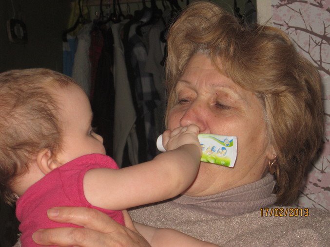Кушать хочет сама, но я пока разрешаю только после того как наестся, поиграть с ложкой и содержимым тарелки, а потом в душ отмываться)))) Кушаем всё, особенно мясо и хлеб,да побольше)))) Причём не важно, если только что поела, если кто то рядом кушает, обязательно приползёт просить поделиться, поэтому уже успели попробовать немного жареного, сладкого, консервированного и тд. Кстати не особо ей и нравится это.... Любит кукурузные палочки, но к остальным сладостям безразлична к счастью))))