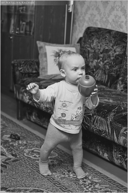 Физическое развитиеЧто-то забыла написать о таком событии....исправляюсь :) Мы ходим! Первые шаги сделали в 8,5 месяцев, а сейчас уже топаем во всю....причём ходит очень аккуратно, почти не падает....если чувствует, что теряет равновесие, то начинает балансировать и пытаться устоять на ногах....в большинстве случает получается. Ну и конечно фото сурьёзного ходока :)