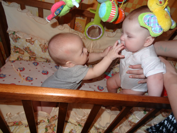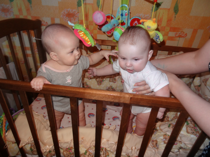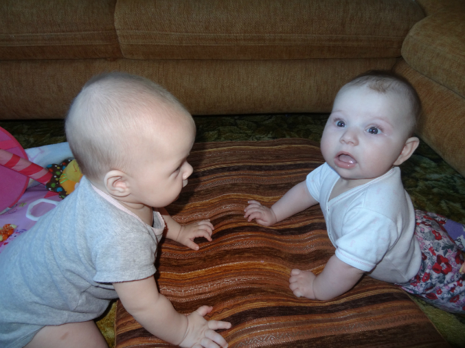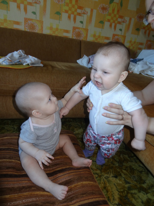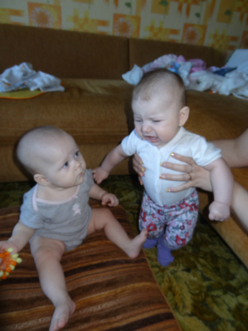 ЭмоцииПодружка Кристина со своей дочурой Аришей (ей 5 месяцев) приходили к нам в гости)) Ариша нас испугалась, моей то все в лицо надо ползти, да все потрогать.. вот нами Ариша и была недовольна...но так немного все-таки удалось им пообщаться)) ФОТО: