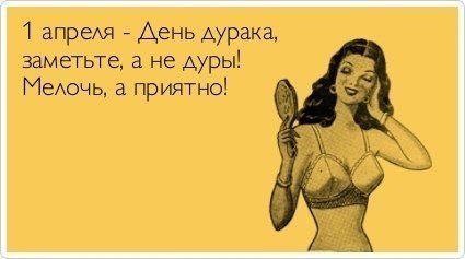 Сегодня отмечаем мыСамый веселый день весны.Сегодня первое апреля,День смеха, радости, веселья.Так давайте же шутить,Веселиться и смеяться,Наших близких разводить,Над друзьями издеваться.У соседей дверь закроемС улицы на два крючка,Мужу мы штаны погладим,Стрелки выверну назад.И совсем-совсем случайно —Брызнем на него духи.А подруге мы позвонимИ признаемся в любви.И тогда жизнь станет точноВеселей в 100 раз... чем щас.