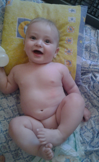Хвастаемсяну на самом деле полгодика нам завтра , пишу заранее) Ну вот теперь мы уже большие.целых полгодика,так быстро пролетело время.родились с весом 3560 и рост 51 см. а сейчас уже вес 9400, рост 67 вот какие мы теперь богатыри)))кушаем кашки,овощи,грызем фруктики, сушки,в общем всего по немногу)через неделю собираюсь уже полностью заменить 2 кормления, одно на кашу, второе на овощное пюре ))умеем ползать, все еще только попластунски, но и не только иногда на четвереньках пару сантиметров можем проползти. стоим на четвереньках качаемся и качаемся, все никак не сядем ((((умеем лежать на боку ,когда бодрствуем и нам так нравиться играть с игрушками в этом положении,что почти всегда во время бодрствования так играем +ползаем и качаемся на четвереньках )вертимся во все стороны,в общем умеем все что должен уметь ребенок в полгода +немножко даже больше )спим мы не по режиму, как ребетенок решил так и ложимся . но на ночь стабильно в 23.00. кушаем по 210 мл. уже имеем 2 зубика))) каждые 4 часа.любим тебя сынок,расти и радуй мамулю каждый день)))*** только написала , что мы не садимся и на тебе сынуля первый раз сел сам))) урааааа)) дождалась )))