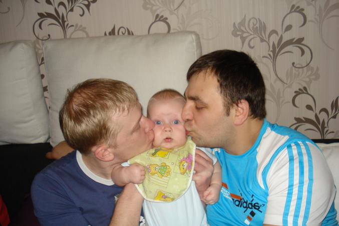 Чмокалки с папой и кресным =) 17.04.2012 (пол года)