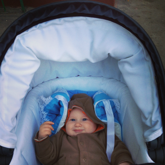 Гуляем иногда 2 раза (зависит от того, во сколько утром встает). Прогулка где-то на 1,5 часа, дольше не выдерживает - хныкать начинает.