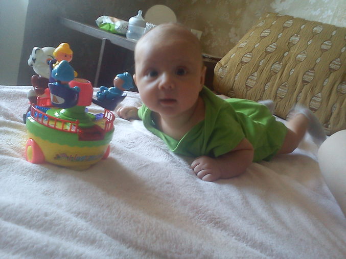 ХвастаемсяНу вот нам уже почти три месяца) Мой пупсяка растет с каждым днем, уже довольно таки серьезный мужчина) самое классное - это его улыбка) Раньше он улыбался только когда с ним сюсюкали, а теперь просто когда меня или папу видит) Особенно по утрам) Разговаривает почти постоянно) И гу гу, агу, бубу, и просто какие то визги радости, как у маленькой макаки)) Научились переворачиваться с живота на спину)