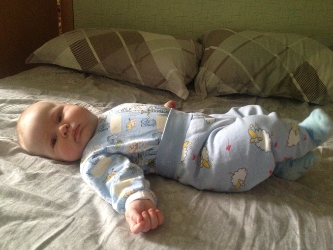 Хвастаемся9 мая Колюньке 4 месяца исполнилось. В день победы мы были на даче, даже позагорали (мама даже обгорела), было тепло. 7-го ходили взвешиваться - 8 кг!!! рост 65 см. Умеем мы уже переворачиваться со спины на живот и обратно. Пытается сесть с полулежачего положения. На руках прям извивается если не столбиком. Смеемся в голос, боимся щекотки. Улыбается, гулит, звуки все больше ГЫ, АХИ, АХУ, ИИ. Руки все время во рту-десны чешет, слюни текут сильно, на полу прям лужица образуется когда на руках сидит у мамы или бабушки. Играется игрушками, из руки в руку перекладывает погремушку. Любит по вечерам на машинки смотреть с балкона (балкон застеклен). Папе радуется как конфетке, прям сияет при виде папы. Один не любит оставаться, сразу хнычет. Теперь даже в кочельке нужна компания. А если на руках целый день - так ему вообще супер. Полюбил игру в КУ-КУ, смеется когда мама выныривает из -за ладошек. Старший брат ему песенки поет и стихи читает - сразу примолкает. Купаемся с удовольствием, в маленькой ванне так плещется что мама вся мокрая. Перешли на взрослую с кругом, барахтается и чего то при этом говорит. Засыпает с сисей вечером, днем может с соской но на улице. Гуляем при любой погоде, даже в дождик. Пытаемся гладить нашего кота, бедный наш Бася - Колюня в него мертвой хваткой вцепляется, клок шерсти выдерает у него. Маму тоже щиплет - то за волосы то за шею и цепочку, то за грудь.