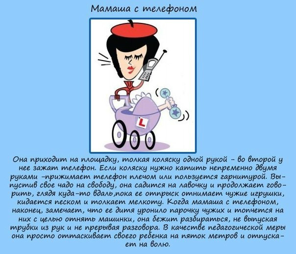 К сожалению иногда бываю мамой с телефоном((( Правда никогда до крайней степени - ребенок все же важнее, разговариваю, когда он или сиди/спит в коляске или едет в велосипеде, на площадке я за ним слежу!