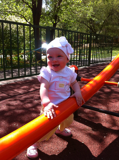 Она у нас самая маленькая на площадке, но не на много отстает от других деток!!! Так горжусь ей!!! Моя принцесса!!!