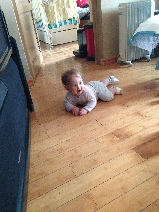 Ползает по всей квартире на пузе. Муж предлагает отдать в разведчики))) Научился перепозать порожки и остальные препятствия. В коридоре лежала пустая коробка из-под обуви, он ее вытащил на середину, открыл, поигрался, а потом вместо того, что бы ее обползти, переполз через нее!! Ну или если на пути к заветному пульту/телефону лежим я или муж - перепозает в 2 счета.