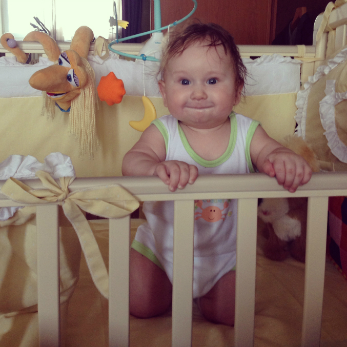 Полчаса катаемся, потом идем на детскую площадку смотреть на детишек, качаться на качельках и стоять на лавке. А потом начинает капризничать, возмущаться, даже на руках ему уже не нравится. Ему нужно ползать!!! Но на улице это нереально, поэтому идем ползать домой.