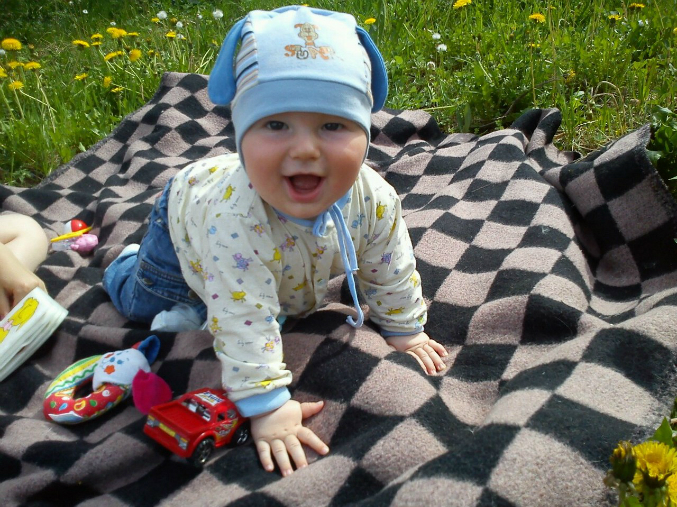 И к нам пришло:-):-) наконец то:-):-):-) гуляем целыми днями у ребенка от солнца даже щечки загорели немного:-):-):-)а у вас ребенок то самостоятельный какой сам ползает' сам кушает ( я про одуванчики):-):-):-):-):-)