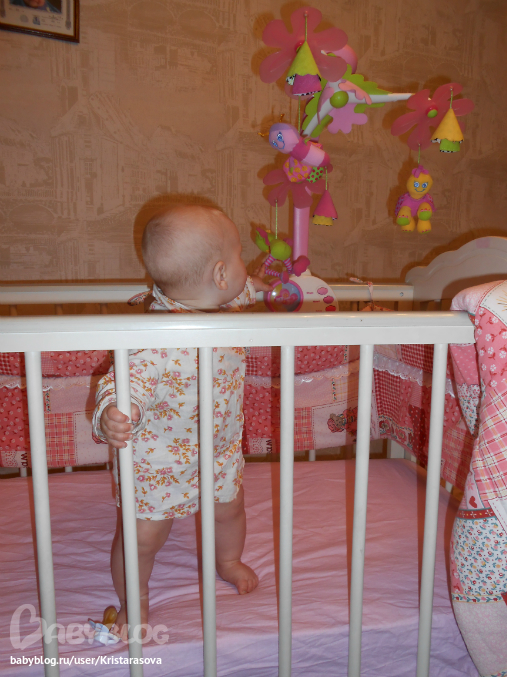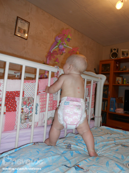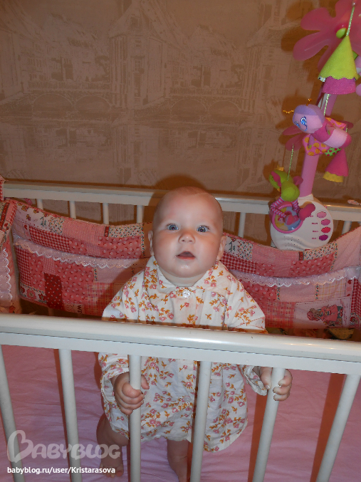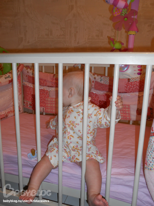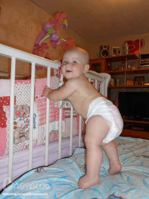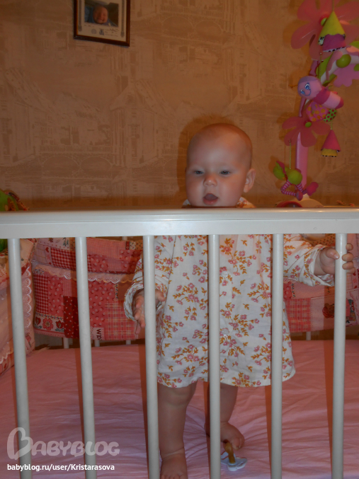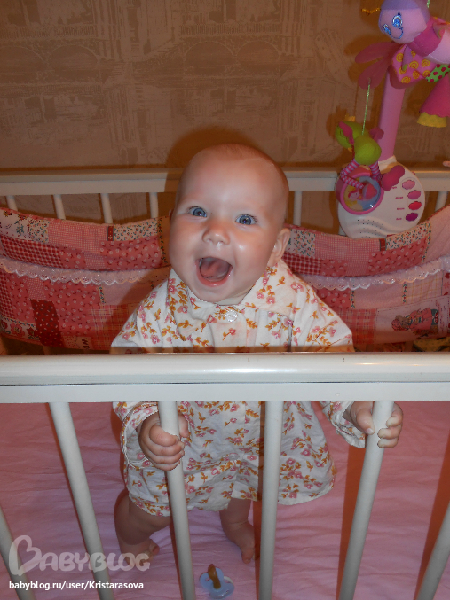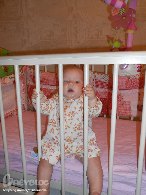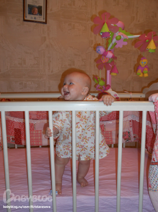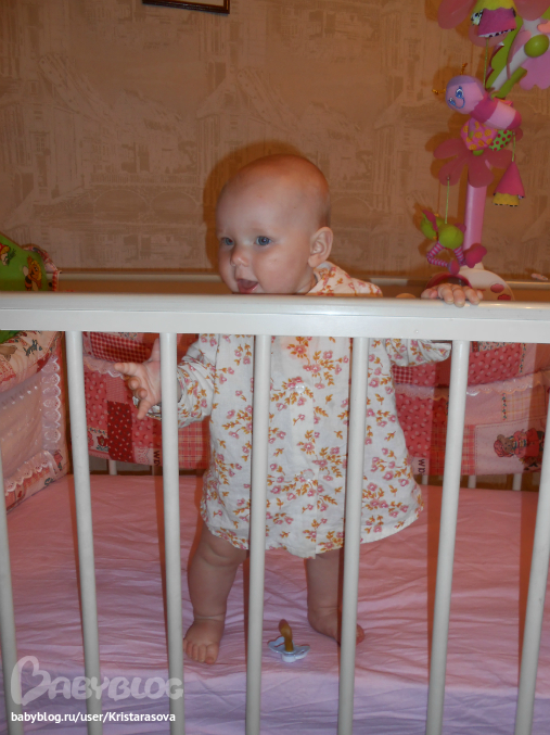 Вот так мы уже умеем, вчера пару шажков делала у кроватки, муж быстрей позвал меня посмотреть, но я не успела)) пытается держаться одной ручкой, падает частенько, но ведет себя стоя уже более уверенно, сидеть не хочет - стоять веселее))