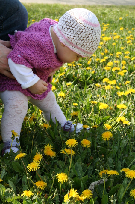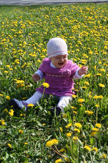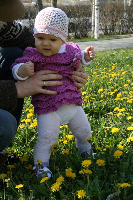8 июня, в Сургуте расцвели одуванчики!!! Сначала Саша их рассматривала с интересом, потом, видимо, увидела в них угрозу и начала плакать(((