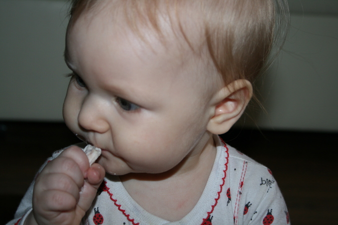 Как все детки, с ложечки прикормы мы есть не хотим. Мясные пюре встречаем с истерикой. А вот так, кусками жует мяско!!! Деснами муслякает его))