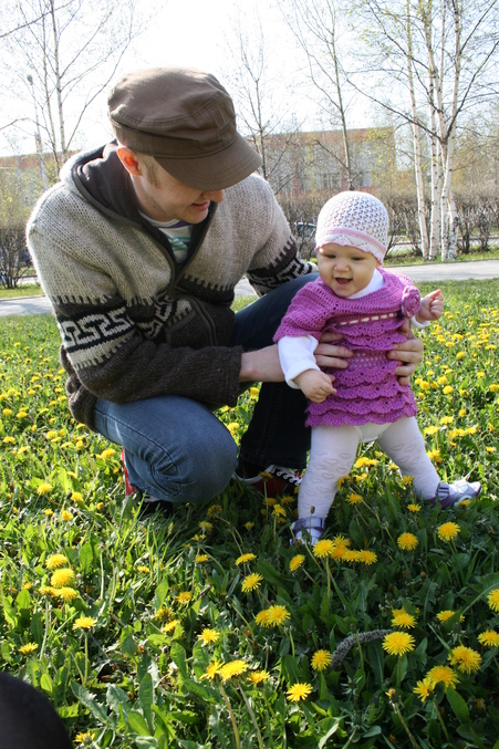 В Сургуте наконец то настало весна-лето. Сегодня +16 - +18 было!!! Погуляли отличненько! Позавчера тоже было тепло, удалось одеть платьице, которое я вязала беременная)))