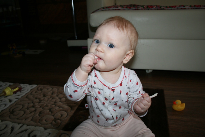 ХвастаемсяТеперь Саша кусь-кусь меня за титю! Вылазили зубки достаточно легко. Температурки не было. Пару раз жидкий стул, он ребенка не беспокоил. Капризничали не много, ожидала больших истерик! В общем молодесь моя козюличка!!!)))