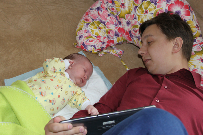 Папа развлекает (там зайчик Шнуффель):
