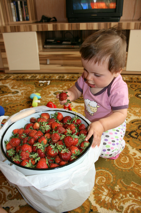 Из еды едим все! Даже пробуем взрослую еду (конечно без фанатизма). Очень любит кашу и персики!