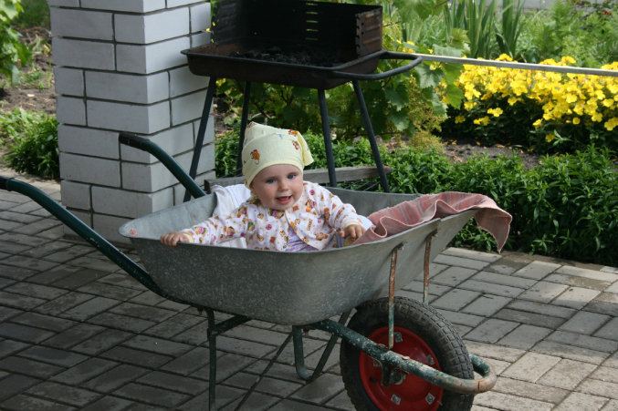 А сейча мы живем у свекров за городом, будем тут месяц. У меня сессия, поэтому бабушка сидит с внучкой. Остается с ней без проблем! Любит ее безумно!