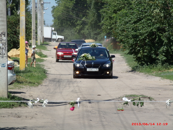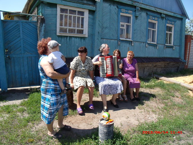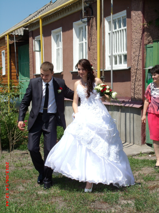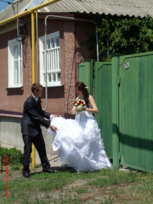 Итак приехали мы в гости в 8:30. Мужу нужно было в военкомат (там огорчили тем, что отправляют на военные сборы осенью) и он нас подкинул. Приехали, Тёмыч сразу вырубился спать, а мы посидели поболтали, оказалось, что у соседки сегодня свадьба)) Вот проснулся мой малыш и пошли мы гулять на улицу (т.к. мама живет в частнике, то гулять можно хоть весь день) и по совместительству ждать жениха (есть такая традиция перекрывать дорогу, чем мы потом и занялись). А на улице уже во всю гормонь играет и все песни поют) Так весело)) Тёма сначала побоялся, т.к. шумо и много народа, а потом стал подплясывать под гармошку) Жениха встретили, и невесту посмотрели-красавица!!) (ниже) ну а потом занялись обычными делами) Собирали вишни) Получилась не просто поездка к бабушке, а целое приключение)) Я сын: